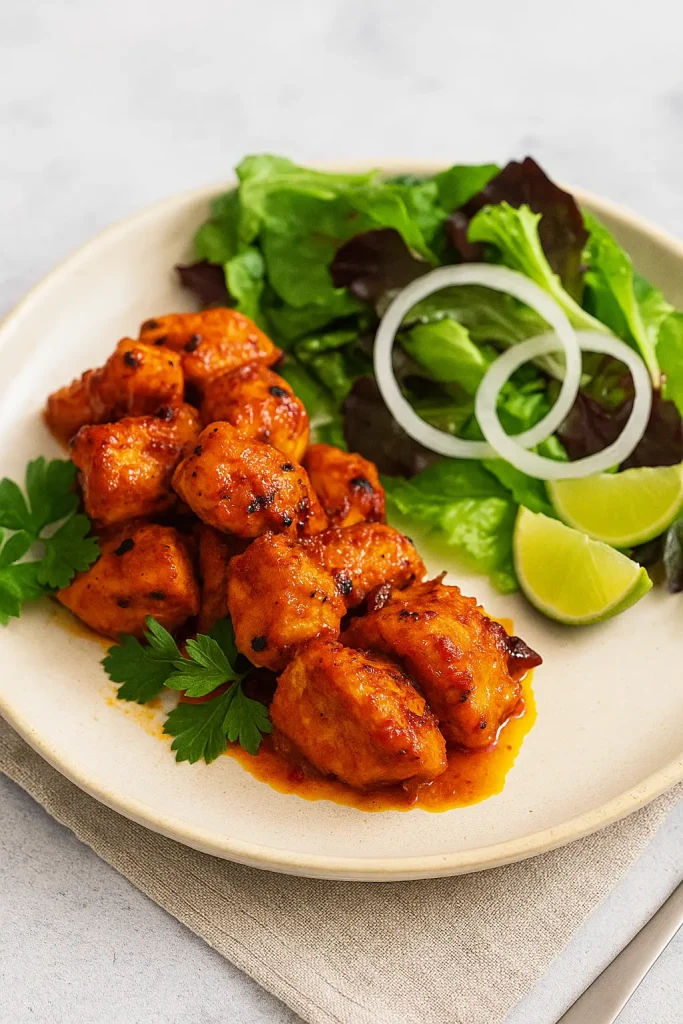 Serve on plates with sliced onion, lime wedges, lettuce and a few coriander leaves.